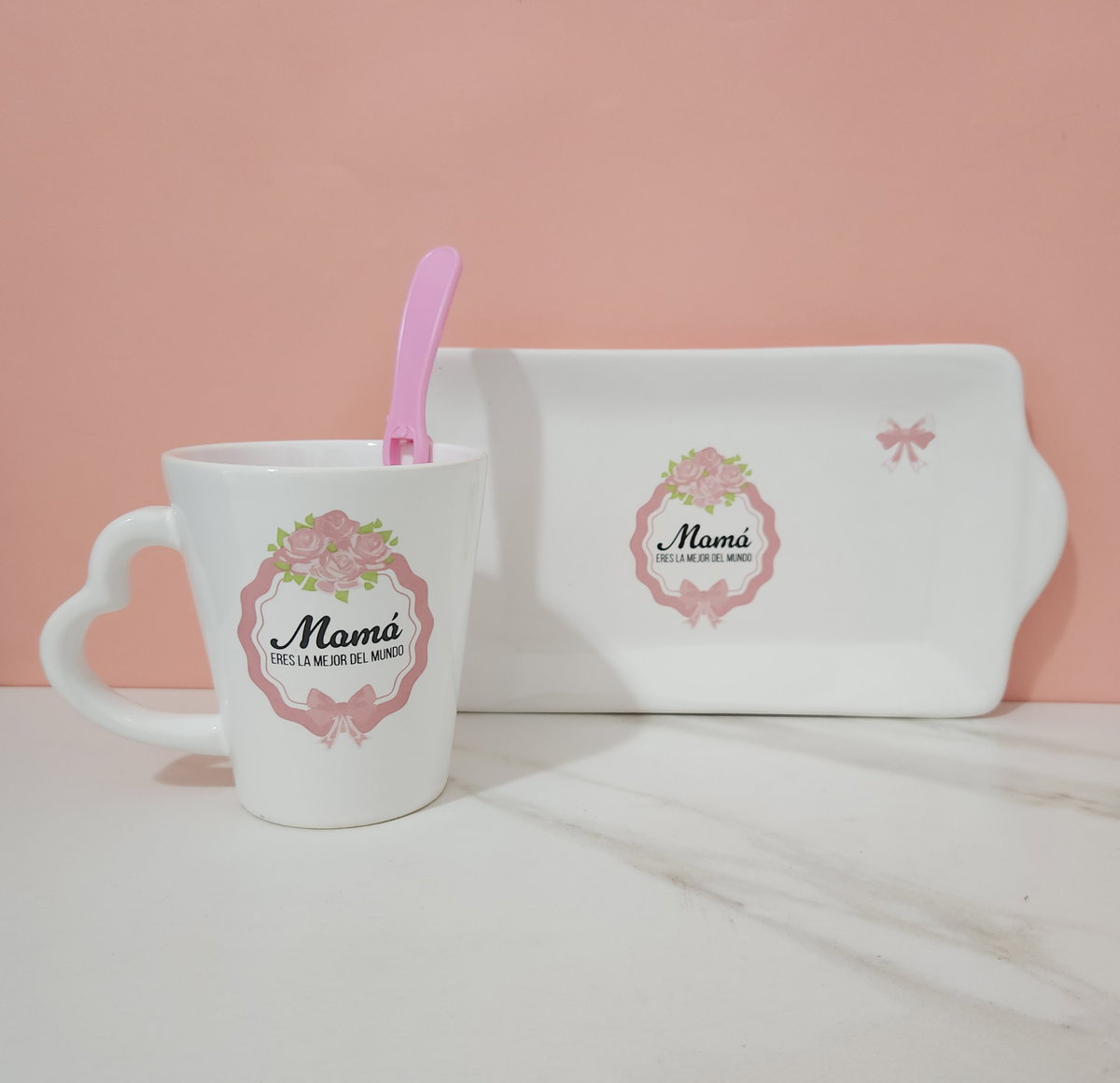 Set de bandeja y taza rose